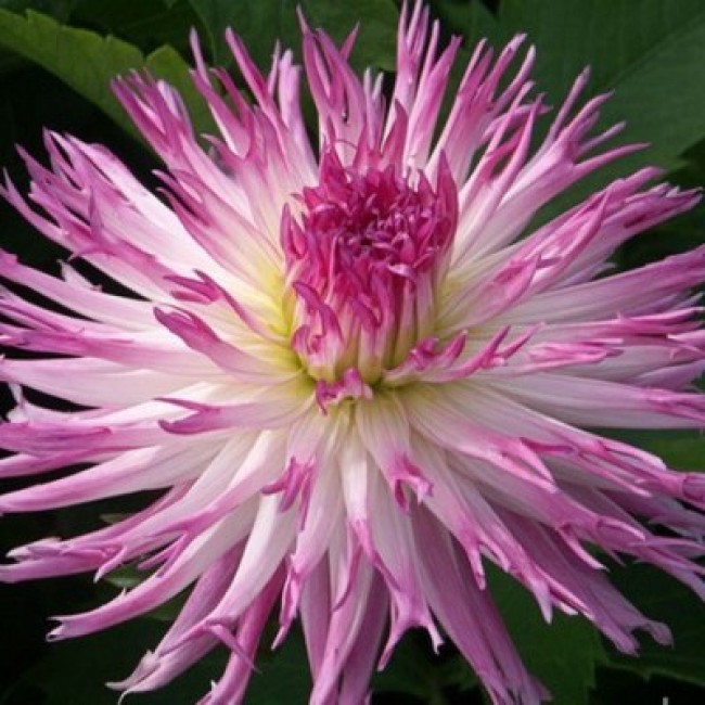 Георгина Бахромчатая Марлен Джой – цвет белый, розовые кончики. Высота 140 см. Цветение наблюдается с июля по октябрь. Глубина посадки 5-7 см над клубнем. Расстояние между растениями в ряду — 25–30 см. После посадки растения обильно поливают.