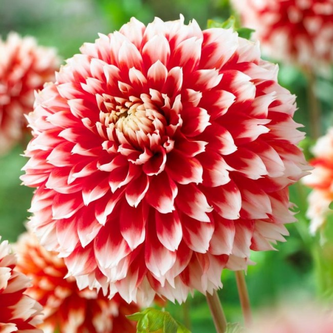 Ноэль - высота растения 100 см. Цветок диаметром 15 см, красный, кончики лепестков белые.