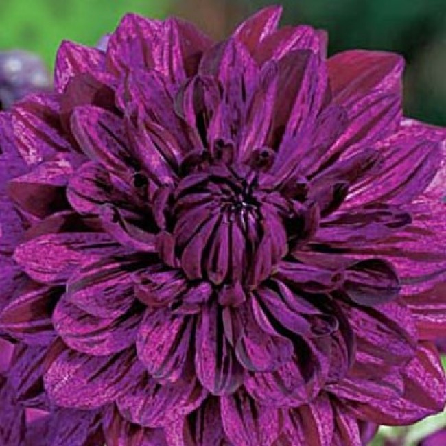 Георгина Декоративная Арт Акт- цвет темно-фиолетовый с бордовыми мазками и частыми штрихами. Высота 80 см. Цветение наблюдается с июля по сентябрь. Глубина посадки 5-7 см над клубнем. Расстояние между растениями в ряду — 25–30 см. После посадки растения обильно поливают.