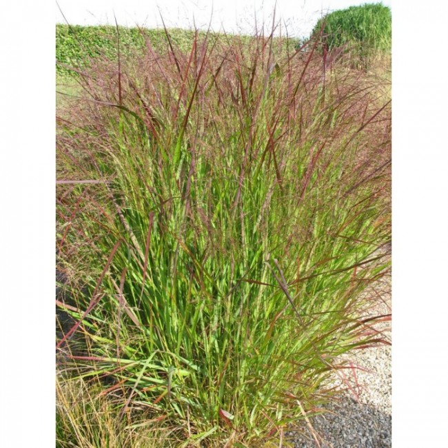 Просо прутьевидное: декоративная многолетняя трава с красивыми соцветиями. Растение образует короткокорневищную расходящуюся дернинку. В результате получаются узкие прямые или слегка разваливающиеся, рыхлые кусты, разные по высоте, от 1,2 до 2,4 м. Лист узкий, линейный, зеленый, осенью — цвета охры. Крошечные соцветия собраны в привлекательные метелки. Широкие воздушные метелки часто имеют розовый или красноватый цвет при раскрытии. Цветет в августе-сентябре. Все части растения прочные, сохраняются даже зимой, пока не засыплет и не поломает снегом. Начинает расти поздно весной, иногда даже в начале лета. Развивается быстро и мощно, если лето теплое.